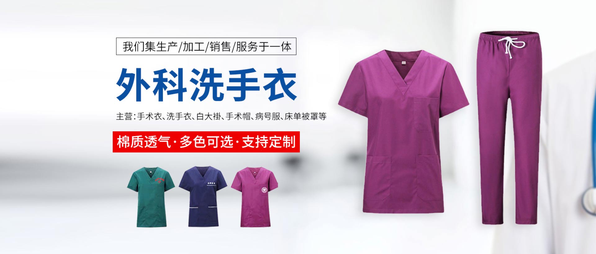 項(xiàng)城市依姿潔服裝有限公司主要生產(chǎn):護(hù)士服夏裝、護(hù)士服冬裝、醫(yī)生服、病員服、手術(shù)服、急救服、護(hù)士毛衣、羽絨服、護(hù)士鞋、環(huán)衛(wèi)服、床上三件套等。本公司是醫(yī)用服裝生產(chǎn)廠家,公司致力于高質(zhì)量服裝產(chǎn)品的研發(fā)和生產(chǎn),并以客戶為導(dǎo)向,不斷創(chuàng)新,使產(chǎn)品更加專業(yè)化、多樣化,根據(jù)工作環(huán)境不同,配以切合實(shí)際的功能性服裝。